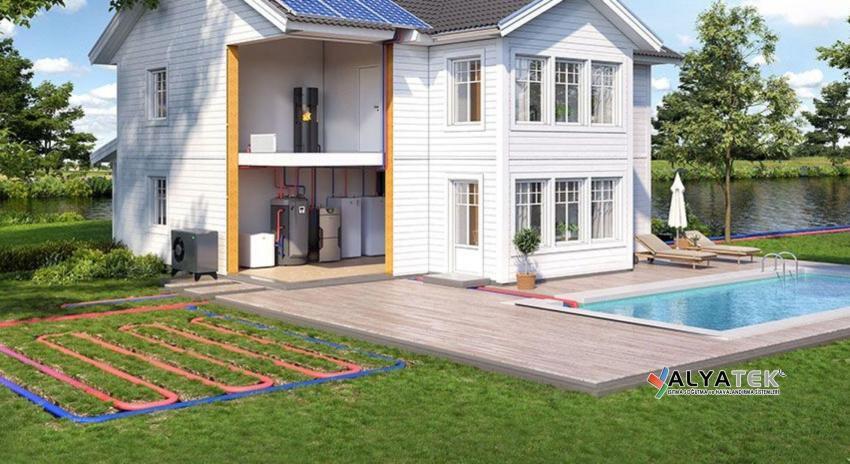 - Toprak Kaynaklı Isı Pompaları (Jeotermal): Toprağın sabit sıcaklığından faydalanarak çalışır. Yeraltına döşenen borular sayesinde topraktan ısı enerjisi çekilir. Bu sistemler, yüksek verimlilik ve uzun ömür sunar, ancak kurulum maliyeti diğer türlere göre daha yüksektir. Villalar için ideal bir seçenektir çünkü geniş bahçe alanları, toprak kaynaklı sistemlerin kurulumunu kolaylaştırır.